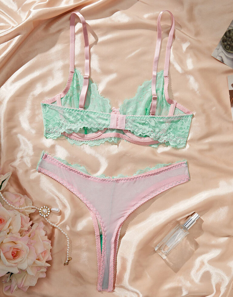 Lace embroidered floral pearl pendant sexy and romantic lingerie set