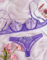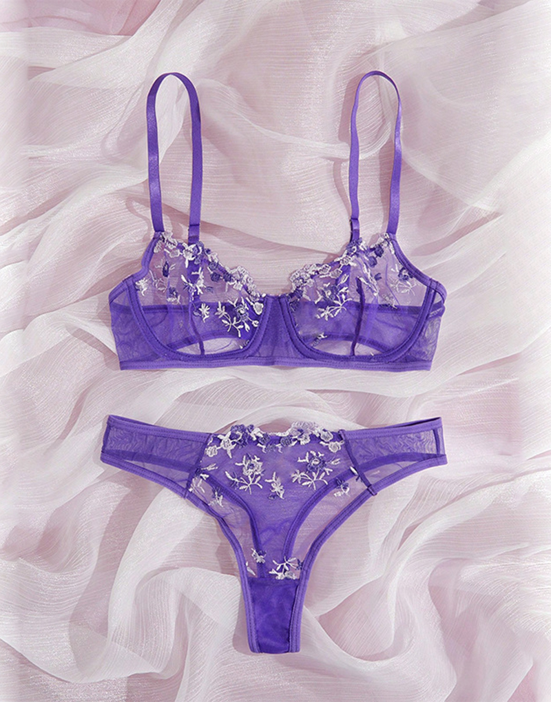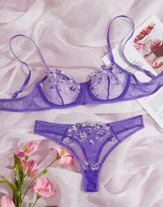 Adopting a romantic purple main tone and paired with exquisite white floral embroidery, the mesh material creates a hazy and sensual atmosphere. The embroidery patterns are delicate and three-dimensional, perfectly blending elegance and charm, and are highly visually appealing.