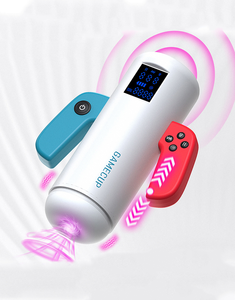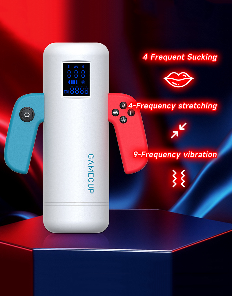 4-frequency suction + 4-frequency stretching + 9-frequency static modes, 20 combination patterns to satisfy your visual needs. Dual-split design for precise control, allowing you to control the rhythm like playing a game, with pleasure at your fingertips. The contrasting red, white, and blue colors highlight the technologically advanced design of the device, making it both a fun toy and a stylish personal item
